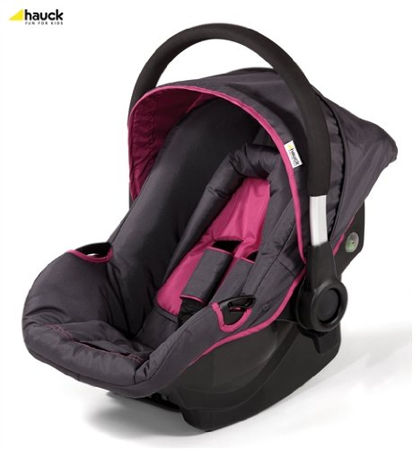 Hauck Car Seat for Capri and Manhattan (Charcoal / Purple) - Hauck Zero Plus 0+ Carseat Charcoal/Purple is a Rear-facing car seat that will fit onto the Hauck Capri and Manhattan pushchairs. Extra light weight and with its ergonomically shaped aluminium handle this car seat has special protection.