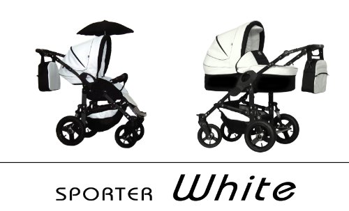 SPORTER 3 in 1 Travel System Baby Pram & Pushchair with Car Seat;WHITE - KEY FEATURES: